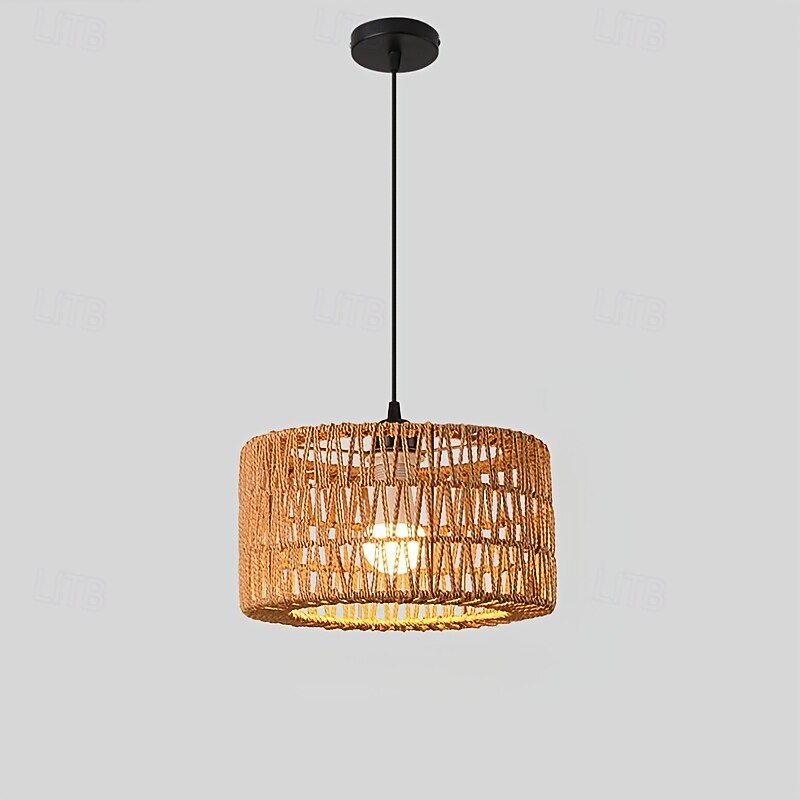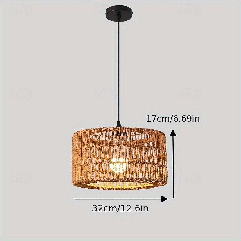 HOT ! Country Vintage Pendant Light, Metal Braided Rattan Ropel, 17cm Height, Warm White/White Light, E26 E27, Adjustable Chain, for Kitchen Island Dining Room Bedroom Restaurant