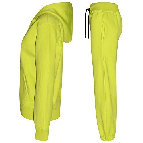 HOT ! Plain Tracksuit Contrast Neon Green and Black Hoodie with Joggers Jogging Pants Sports Activewear Set for Unisex