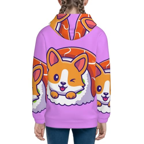 Corgi In Sushi Roll Kids Pullover Hoodies Boys Zip Up Sweatshirts Girls Athletic Clothes with Pocket 4