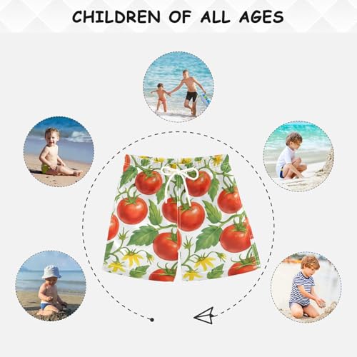 DOMIKING Tomato Blossom White Boys' Swimwear Quick Dry Swim Trunks with Pockets for Boys Kids Adjustable Waist L 4