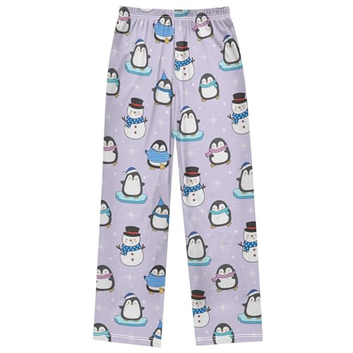 Boy's Lounge Pants Cute Penguin Snowman Winter Kids Jogger Pants Elastic Waist Long Bottoms with Pockets 6-14 Years 6