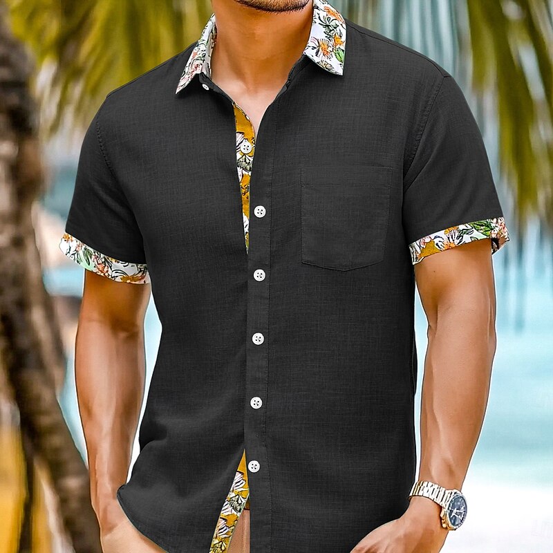 More information about Men's Shirt Linen Shirt Summer Shirt Beach Wear Button Up Shirt Solid Color Vacation Curise Black White Green Light Blue Short Sleeve Collar Summer Spring & Summer Clothing Apparel