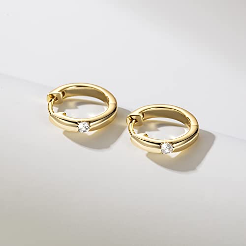 • 【Specification】The huggie earrings for women gold huggie hoop earrings are gold earrings for women with 15mm diameter and 3mm thick. The 14k gold plated hoop earrings is set with a natural cubic zirconia that measure 2.5mm.