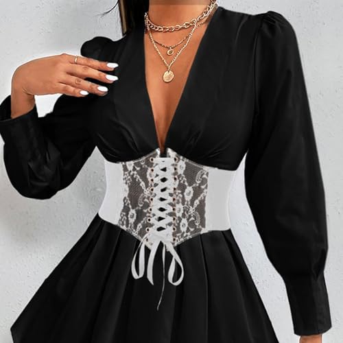 COSYDAYS Lace Corset Belt Black Wide Elastic Waist Belts Tied Waspie Corset for Women 6