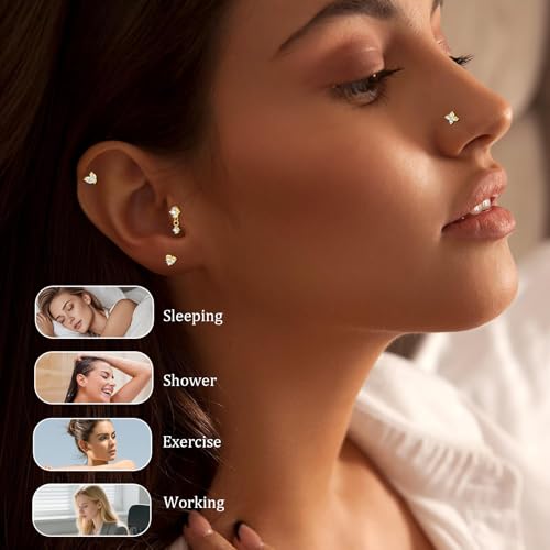 • 【Wearing Tips】: The unique push in design makes it easy to put in and take out, compared to internally threaded styles, you simply use your fingers to push the gold cartilage earring into place. Wearing it, whether it's everyday or at parties, you will be the most shining focal point.