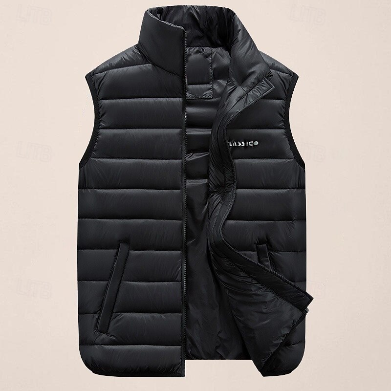 HOT ! Men's Puffer Vest Going out Basic Fall & Winter Pocket Polyester Warm Letter Zipper Stand Collar Regular Fit Black Red Blue Army Green Vest