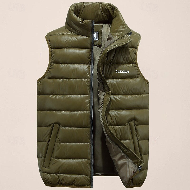 More information about Men's Puffer Vest Going out Basic Fall & Winter Pocket Polyester Warm Letter Zipper Stand Collar Regular Fit Black Red Blue Army Green Vest