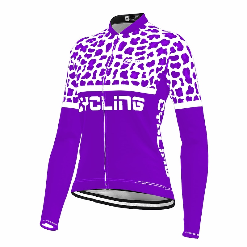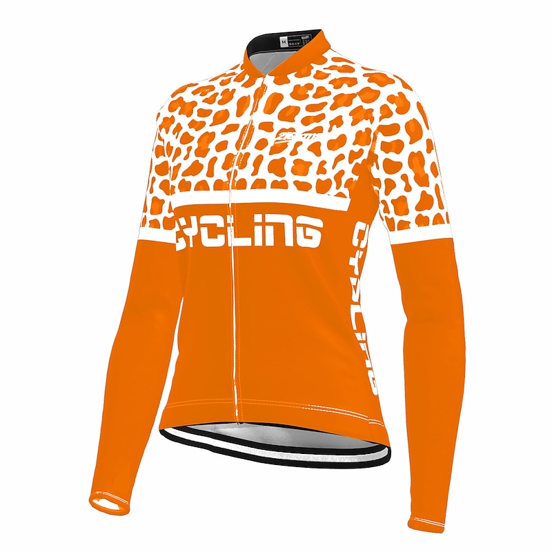 Highlights - Made of 100% polyester for lightweight, breathable comfort during hard cycling sessions. - Wicks sweat away from the body to keep you dry and comfortable. - Features 3 pockets for storing valuable items, snacks, and mid-ride essentials. - Loose fit design provides optimal comfort both on and off the bike, with extra coverage from the longer elastic rear hem. - Reflective elements on the front and back improve visibility for safe day and night cycling. - Suitable for road bike and mountain bike disciplines, with a versatile classic design for leisure and urban cycling as well. - Long sleeves, stretchy elasticity, and a quick-dry, moisture-wicking function enhance the performance. - Chic leopard pattern adds trendy style.