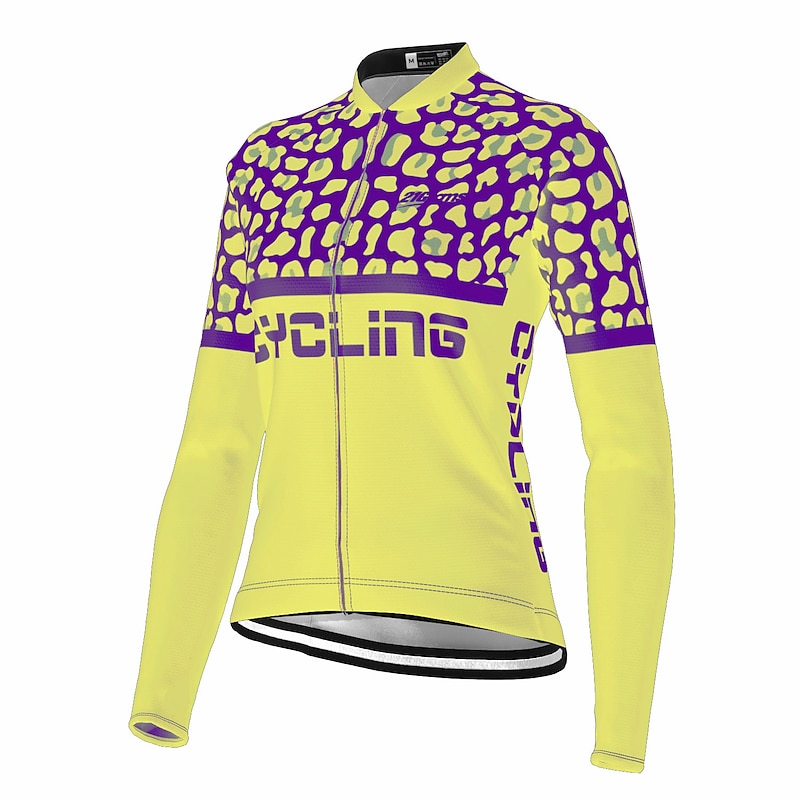 HOT ! Women's Cycling Jersey Leopard Funny Long Sleeve Bike Jersey Top with 3 Rear Pockets Mountain Bike MTB Road Bike Cycling Quick Dry Reflective Strips Back Pocket Moisture Wicking Sports Black Yellow