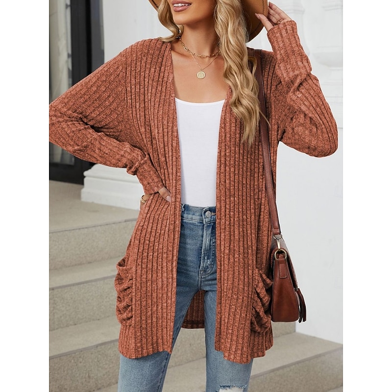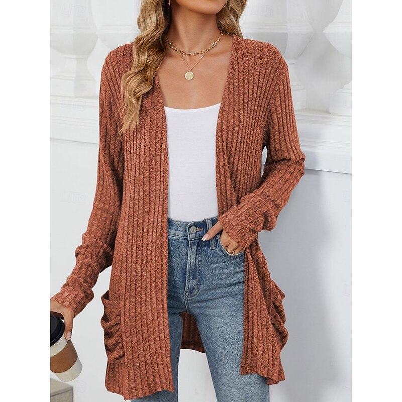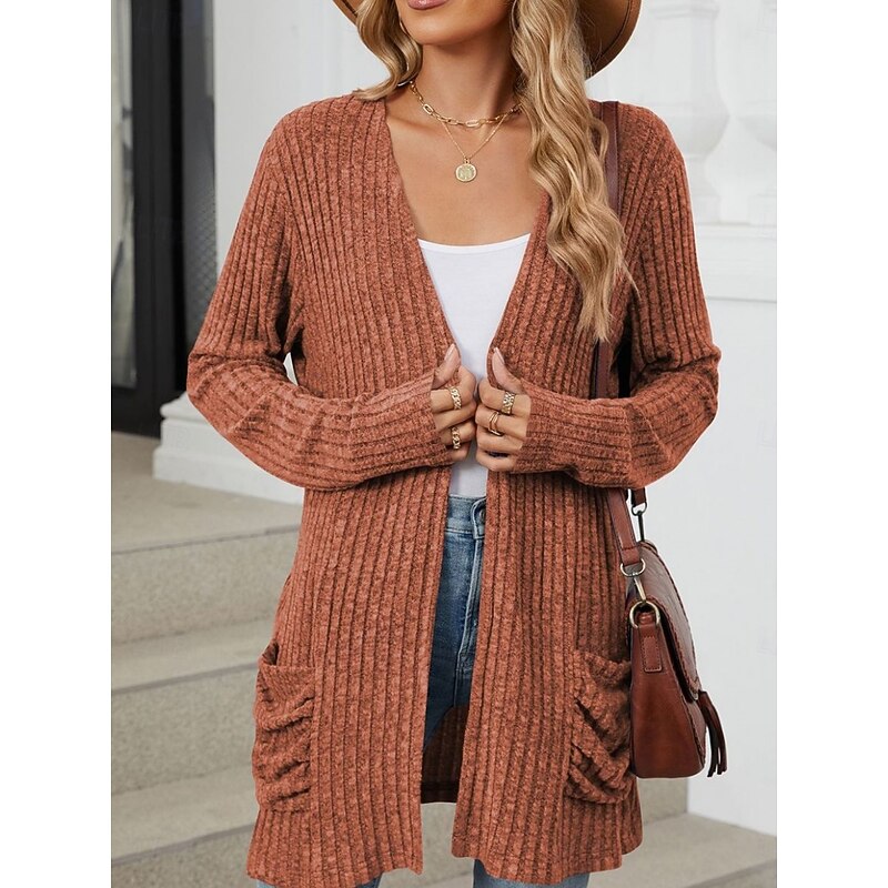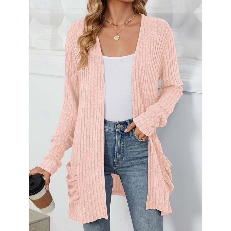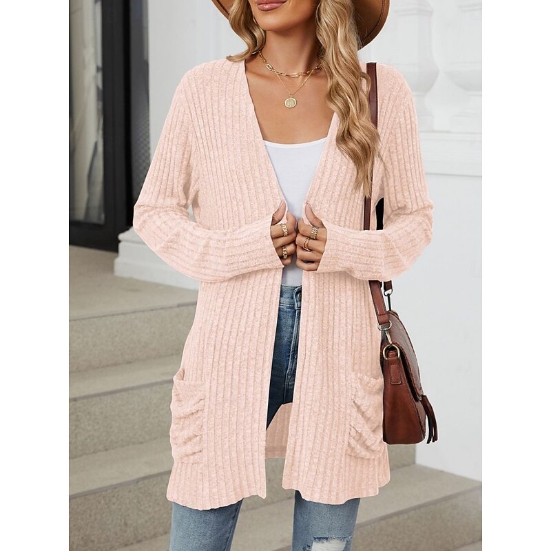 More information about Women's Sweater Cardigan Elegant Fashion Streetwear Pure Color Open Front Pocket Knitted Long Sleeve Regular Tops Knit Outdoor Daily Weekend Pink Blue Fall Winter