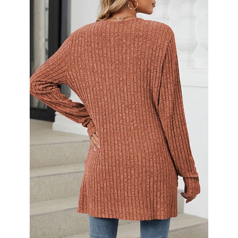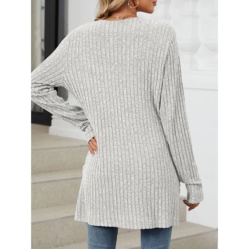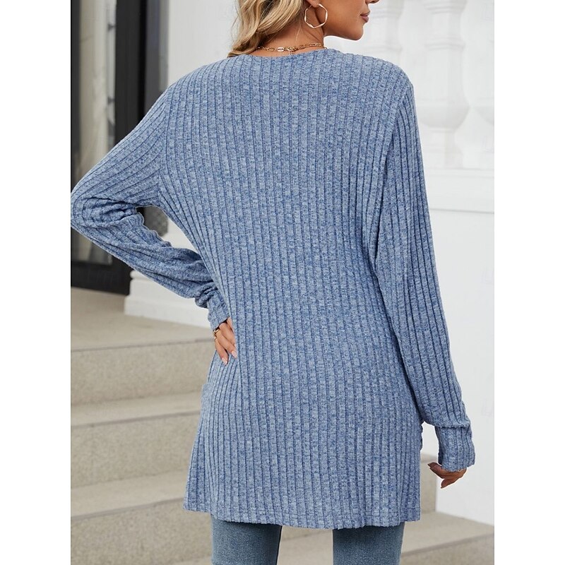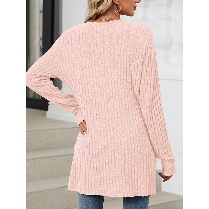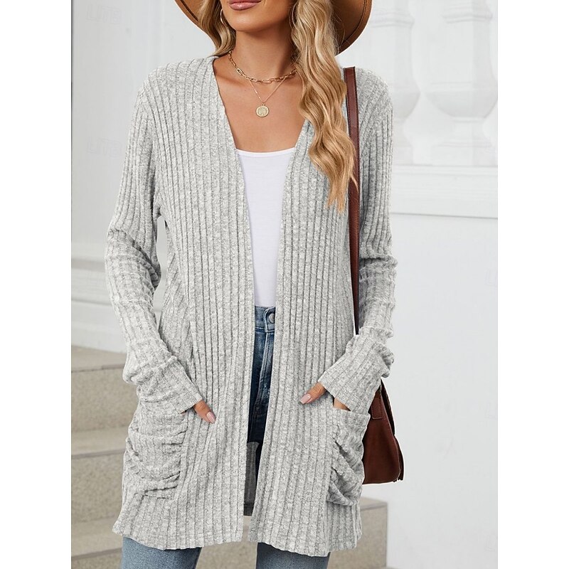 More information about Women's Sweater Cardigan Elegant Fashion Streetwear Pure Color Open Front Pocket Knitted Long Sleeve Regular Tops Knit Outdoor Daily Weekend Pink Blue Fall Winter