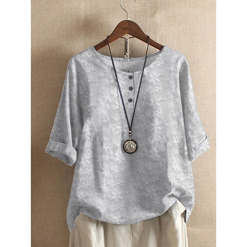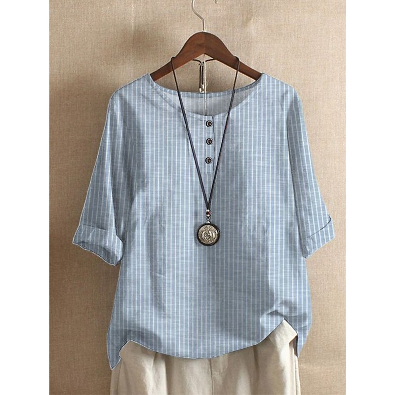 More information about Women's Shirts Floral Striped Basic Casual Half Sleeve Crew Neck Regular Tops Daily Print Black White Blue Sky Blue Green Summer