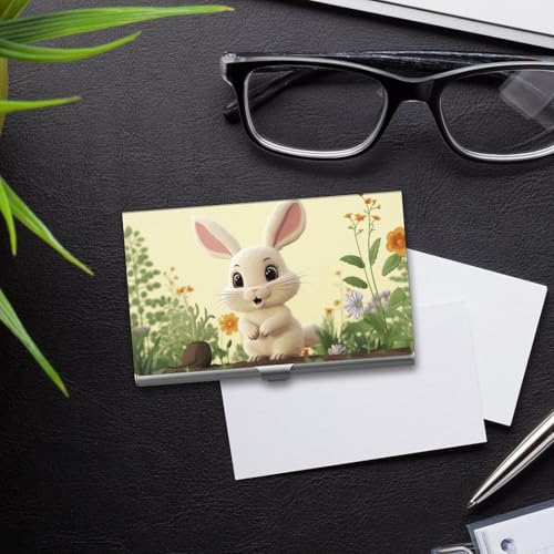 Premium Aluminum Business Card Case Cute Bunny Printed for Men & Women - Slim Metal Credit Card Holder with Polished Silver Gray Finish, Pocket-Sized Name Card Wallet 1