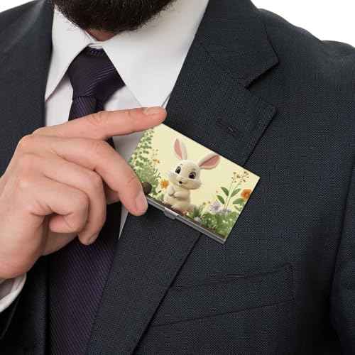 Premium Aluminum Business Card Case Cute Bunny Printed for Men & Women - Slim Metal Credit Card Holder with Polished Silver Gray Finish, Pocket-Sized Name Card Wallet 5