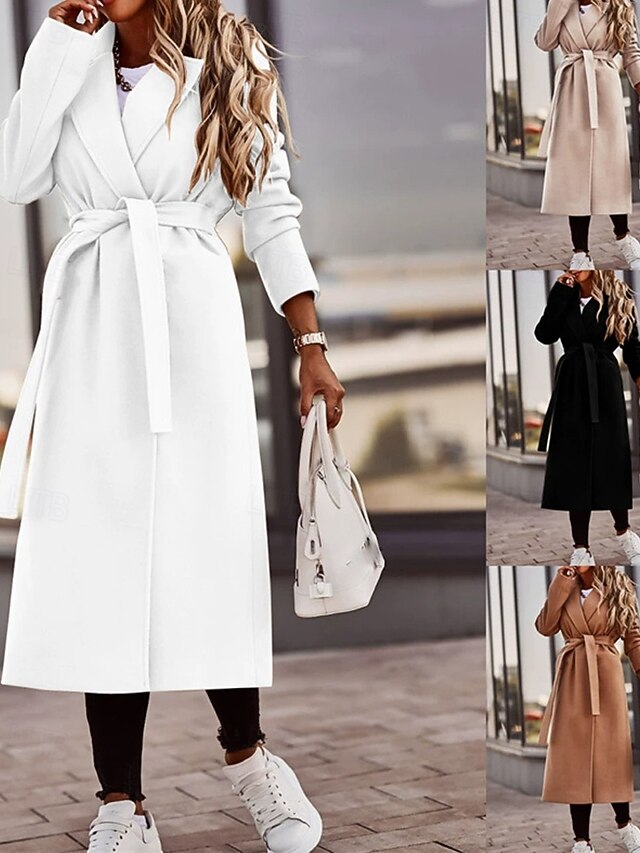 Women's Casual Jacket Warm Comfortable Pocket Fashion Outdoor Plain Going out Weekend Single Breasted Regular Lapel Regular Fit Long Sleeve Outerwear Black White Khaki Fall Winter 11
