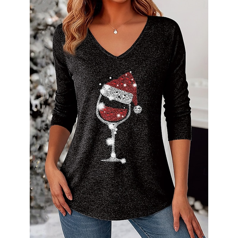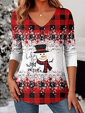 More information about Christmas Women's T Shirt Graphic Snowman Christmas Tree Vintage Stylish Classic Long Sleeve V Neck Regular Tops Daily Print White / Black Black+White+Red Black Wine Red Spring Fall Winter