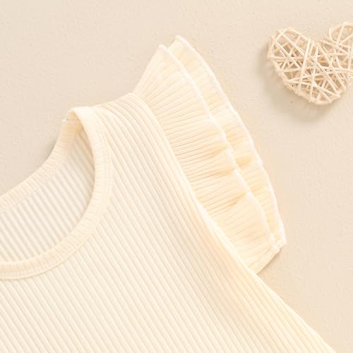 Toddler Girls Basic T-Shirts Top Ruffle Sleeve Crew-Neck Ribbed Knitted Cotton Kids Plain Shirts Summer Tops 4