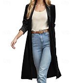 More information about Women's Coat Trench Coat Warm Comfortable Open Front Casual Plain Vacation Going out Weekend Long Turndown Regular Fit Long Sleeve Outerwear Black Pink Wine Fall Winter