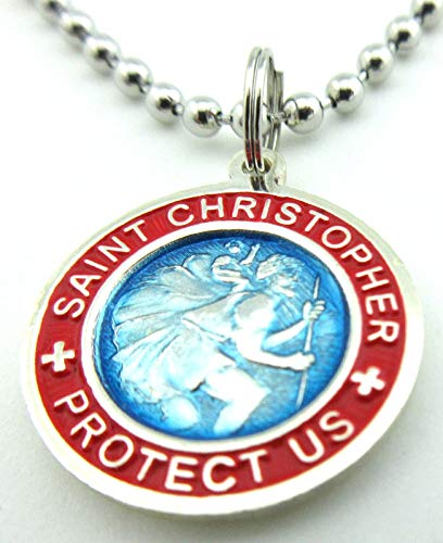 More information about St. Christopher Surf Medal Necklace Pendant, Protector of Travel am-fu Aquamarine-Fuchsia Small