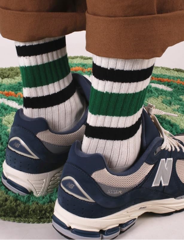 Retro Striped Cotton Crew Socks Elastic Cuff Unisex Athletic Breathable Slouch Sock for Women Men 3