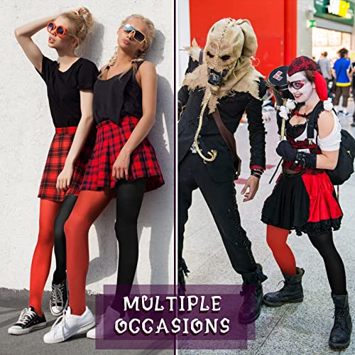 Tarpop 4 Pairs Halloween Two Toned Jester Tights Thigh High Opaque Stockings Pantyhose Jester Stockings Hosiery Leggings with Reinforced Toe for Party Cosplay 2