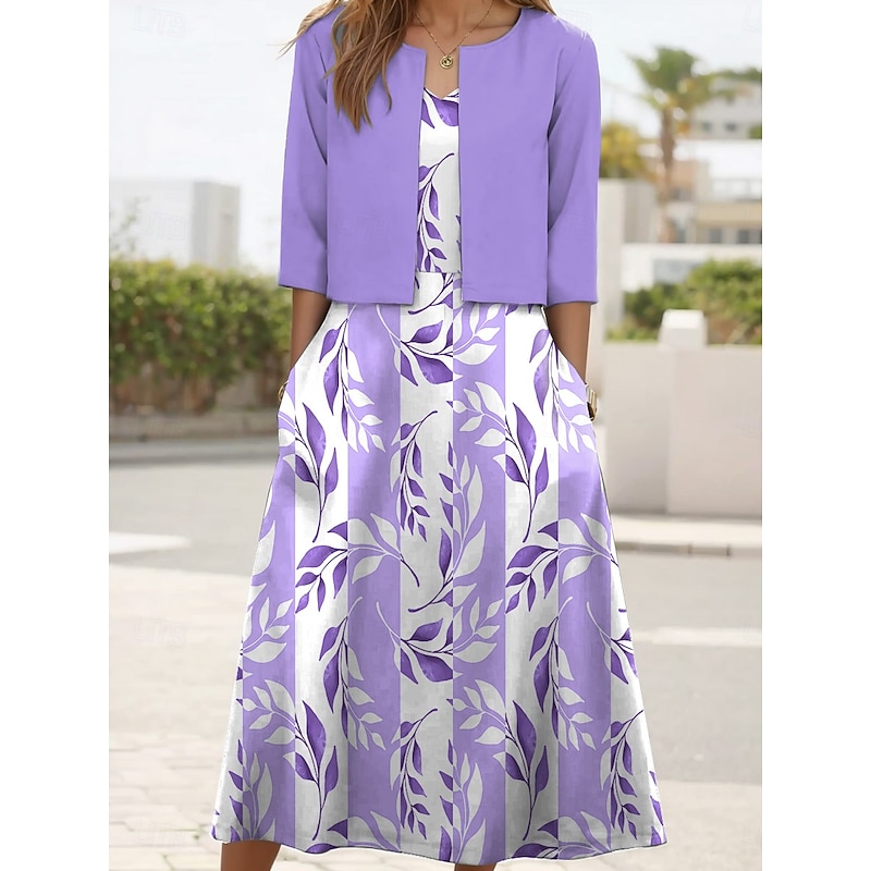 HOT ! Women's Two Piece Dress Sets Midi Dress with Jacket Elegant A Line Dress Half Sleeve Fit And Flare Dress Party Formal Floral Print V Neck Formal Pink Blue Green Regular Fit