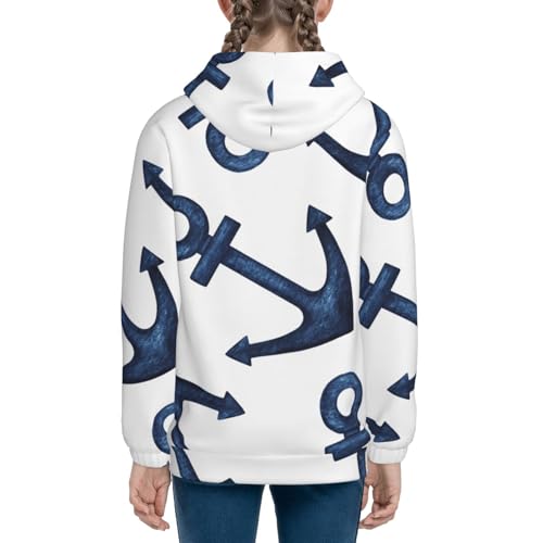 Navy Blue Anchor Kid Hoodies Boys Zip Up Sweatshirts Girls Pullover with Pocket 4