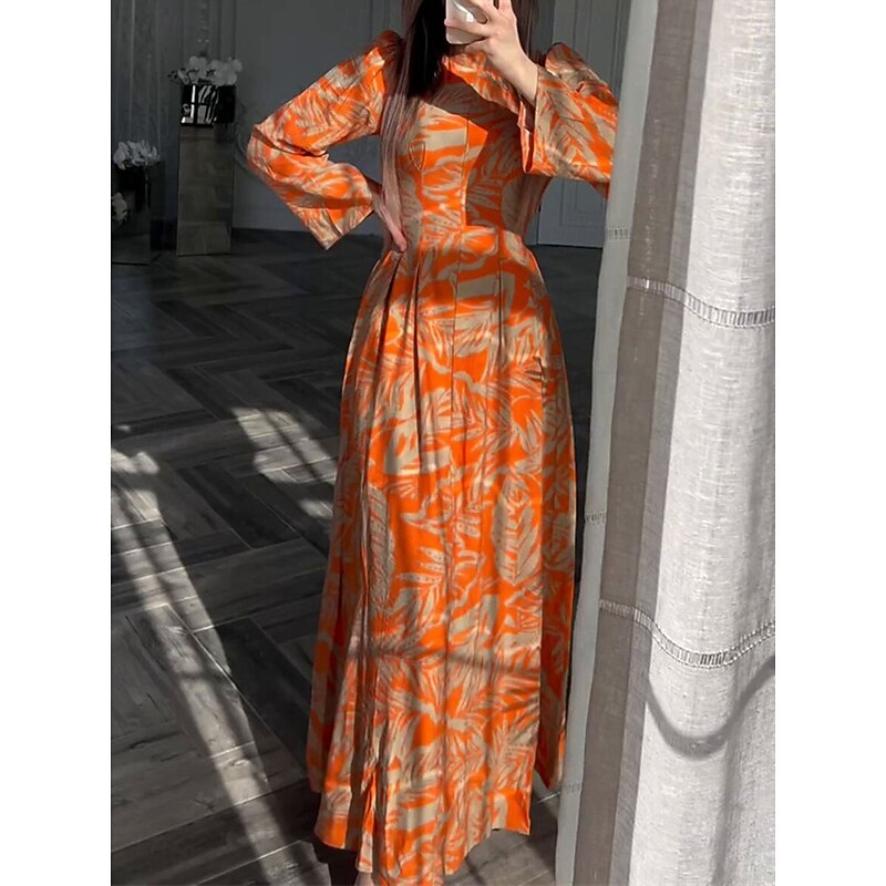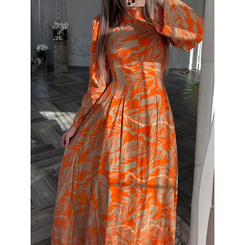Women's Floral Stand Collar Maxi Dress Long Sleeve Summer Spring 2