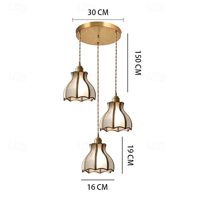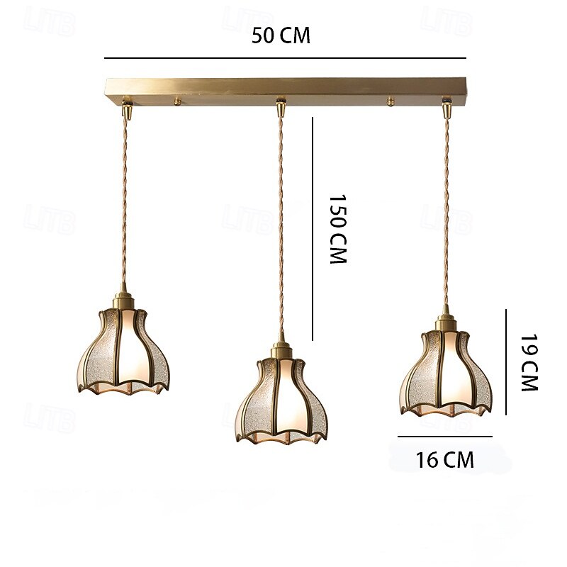 More information about Pendant Lights American Vintage Brass Pendant Lamp with Spliced Glass Shade European Simple 6.3in Brass Glass Hanging Lamp 85-265V