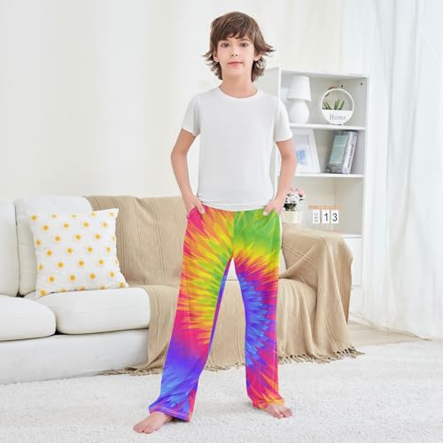 Colorful Tie Dye Rainbow Boys Long Pants Soft Trousers Elastic Waist Kids Lounge Bottoms with Pockets S-XL 4