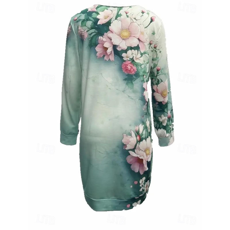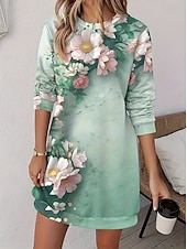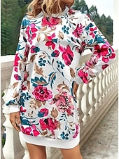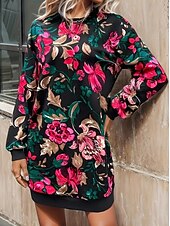 More information about Women's Sweatshirt Dress Mini Dress Sweater Dress Shift Dress Vacation Casual Boho Outdoor Regular Fit Floral Graphic Long Sleeve Crewneck Red black Pink Green Grey Fall Winter