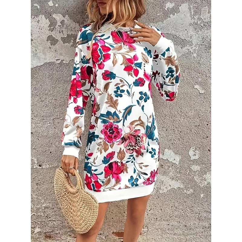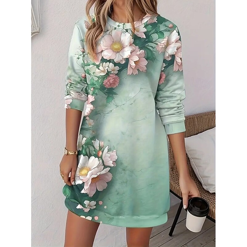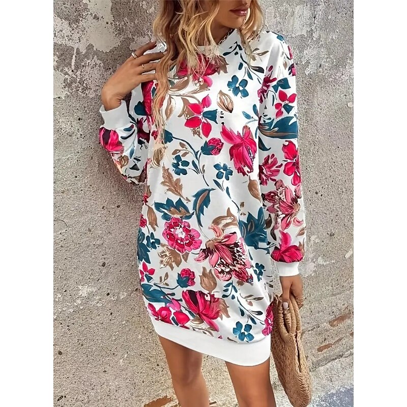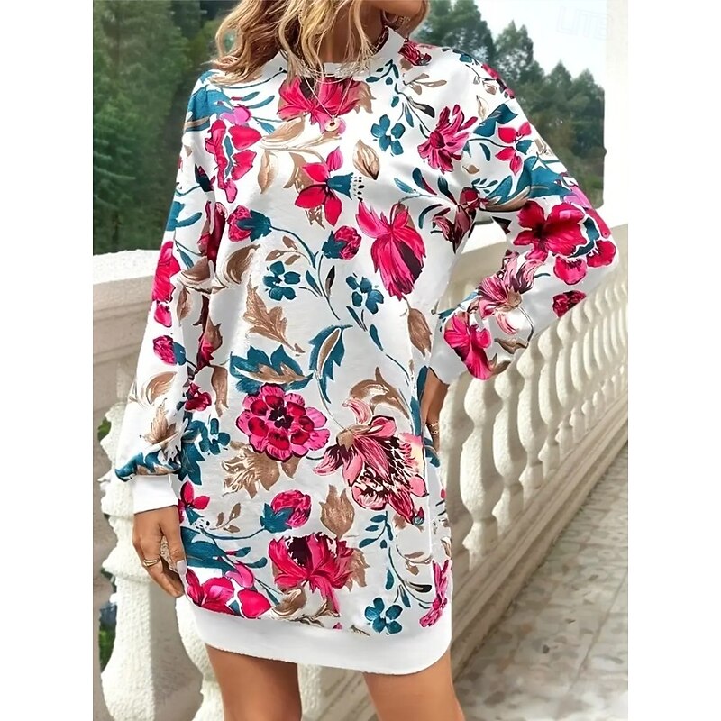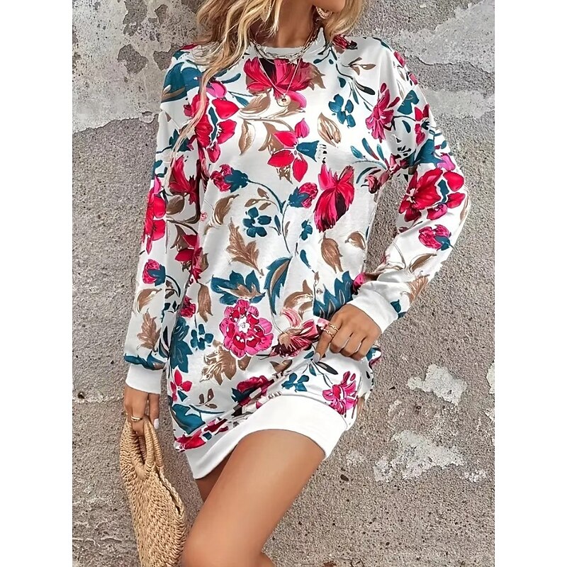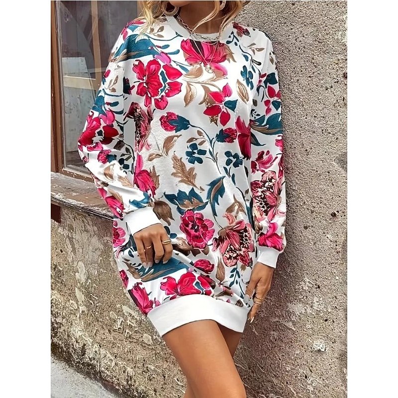 HOT ! Women's Sweatshirt Dress Mini Dress Sweater Dress Shift Dress Vacation Casual Boho Outdoor Regular Fit Floral Graphic Long Sleeve Crewneck Red black Pink Green Grey Fall Winter