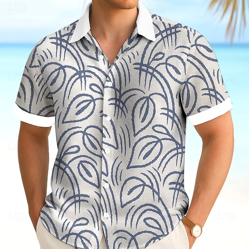 More information about Men's Tropical Leaf Summer Hawaiian Shirt Button Up Shirt Aloha Shirt Short Sleeve Hawaiian Vacation Beach Wear Summer Spring Turndown 3D Print Collared Shirts Light Green Blue Green Dark Blue