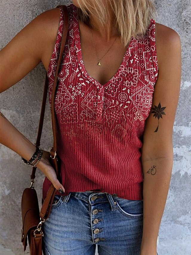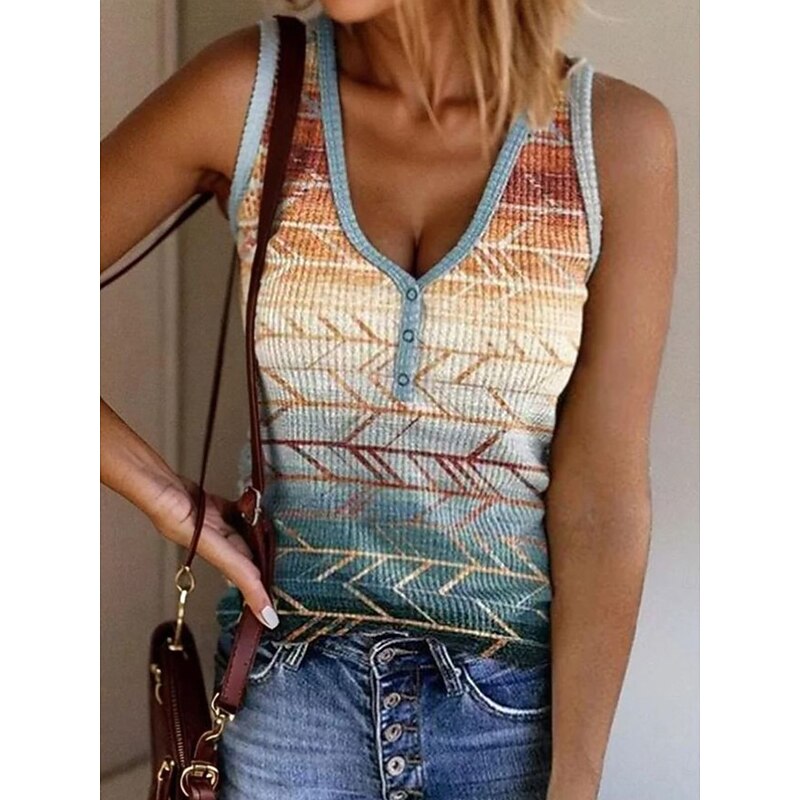 More information about Women's Camisole Tank Top Graphic Geometric Bohemia Vintage Tropical Sleeveless V Neck Regular Tops Daily Print Light Green Red Blue Khaki Rainbow Summer Spring