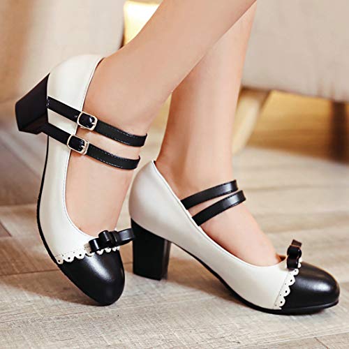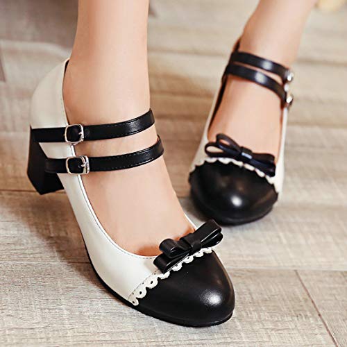 MAVMAX Women's Bowtie Mary Janes Block Chunky Mid Heel Lolita Pumps 6
