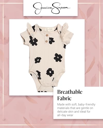 Jessica Simpson Baby Girl Layette Set - 4 Piece Newborn Baby Girl Outfits with Onesie Bodysuit Baby Pants Hat & Socks (0-9M)