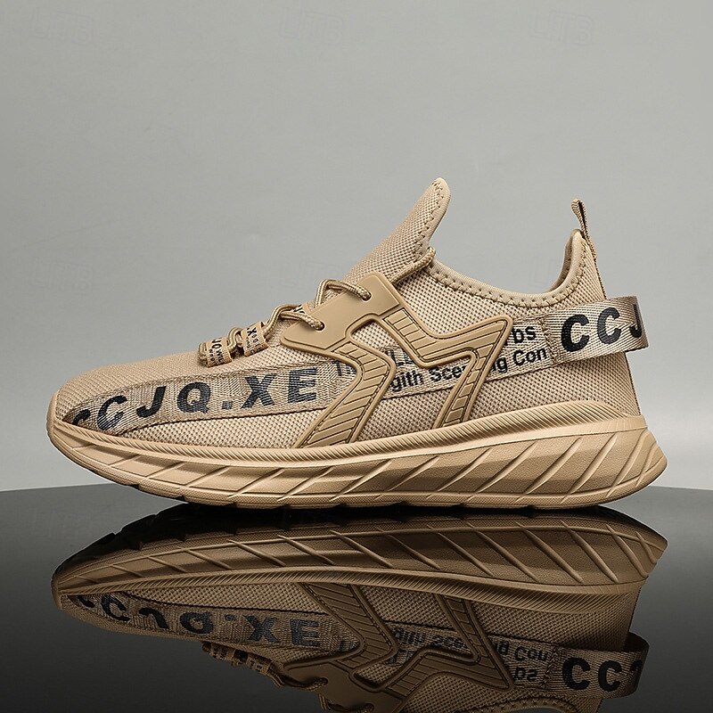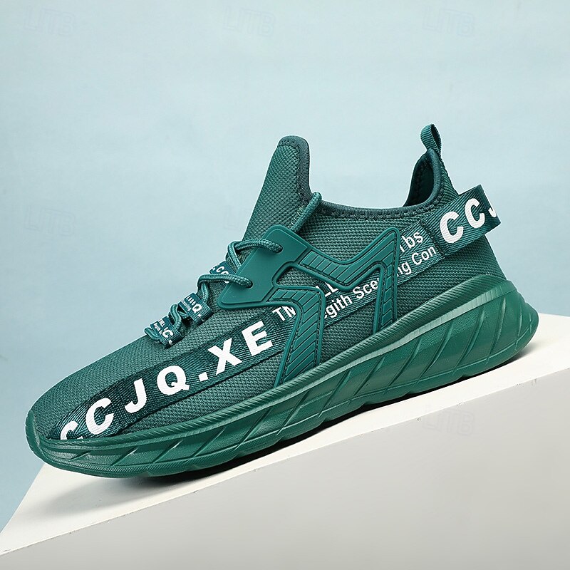 HOT ! Men's Green Sports Sneakers with Bold Lettering Design - Comfortable, Lightweight, Ideal for Running, Gym and Active Lifestyles