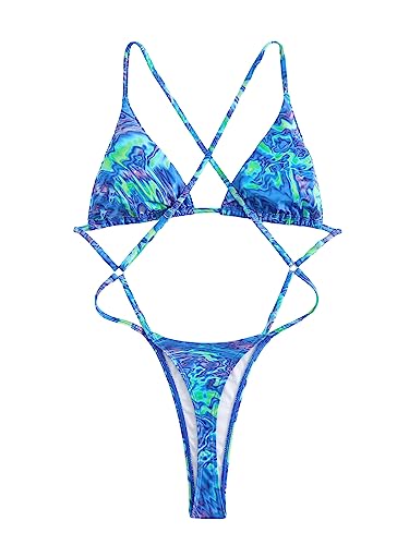 • Features: one piece bathing suit for women, criss-cross back, high cut, cut out, triangle cups, marble print, removable padding