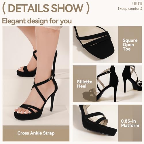 More information about IDIFU IN4 Platform High Heels for Women Strappy Heeled Sandals Square Toe Heels Stiletto Heels Women's Wedding Party Bridal Sexy Dress Shoes Open Toe Heels
