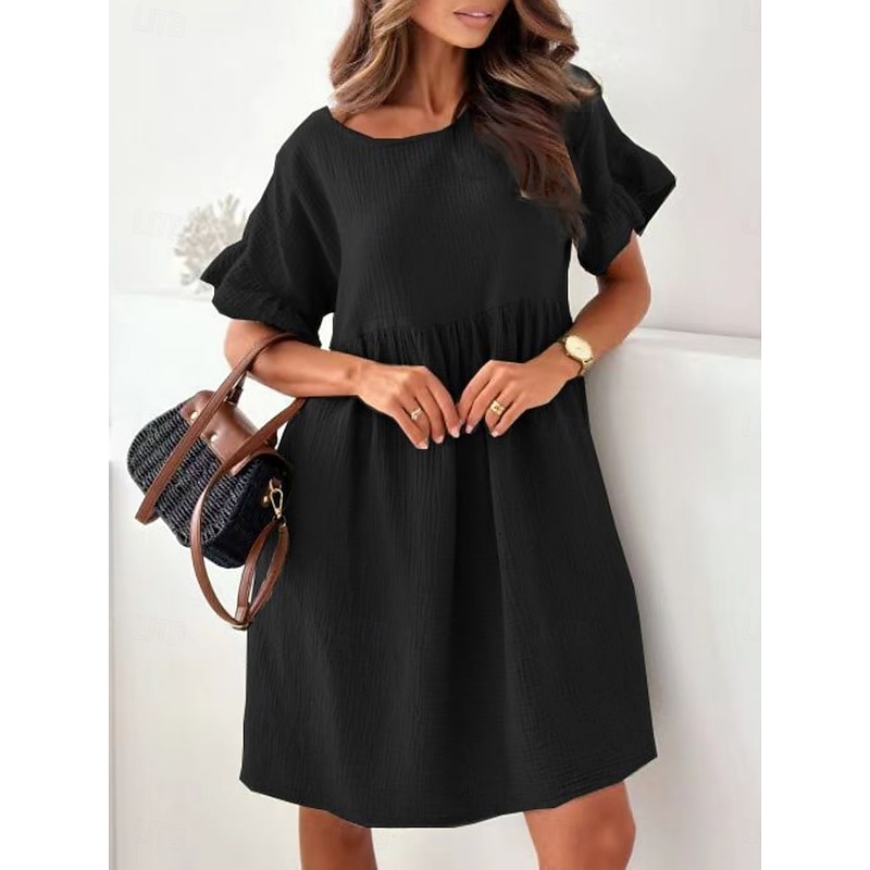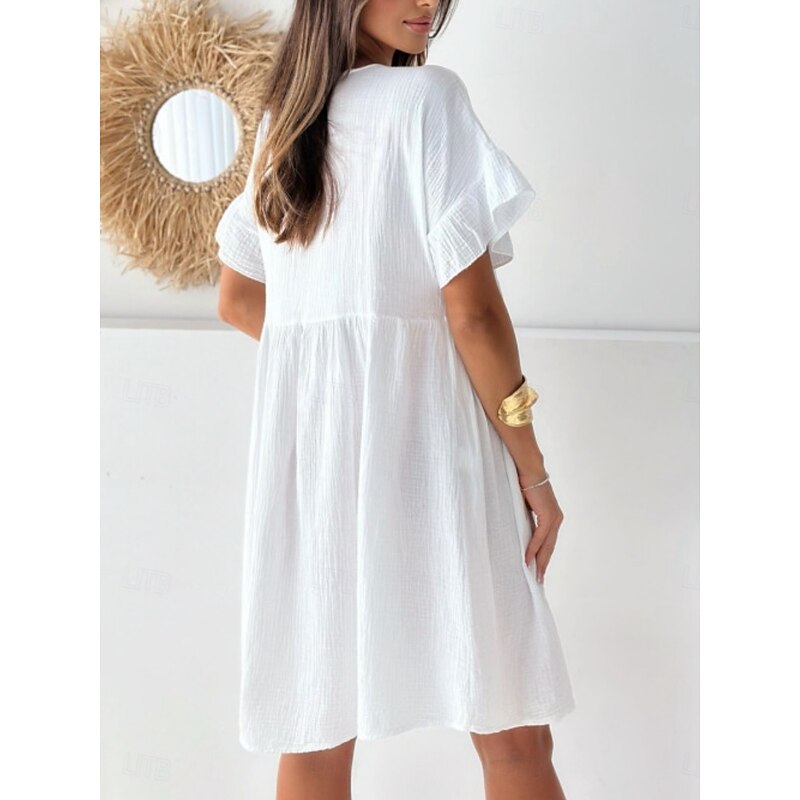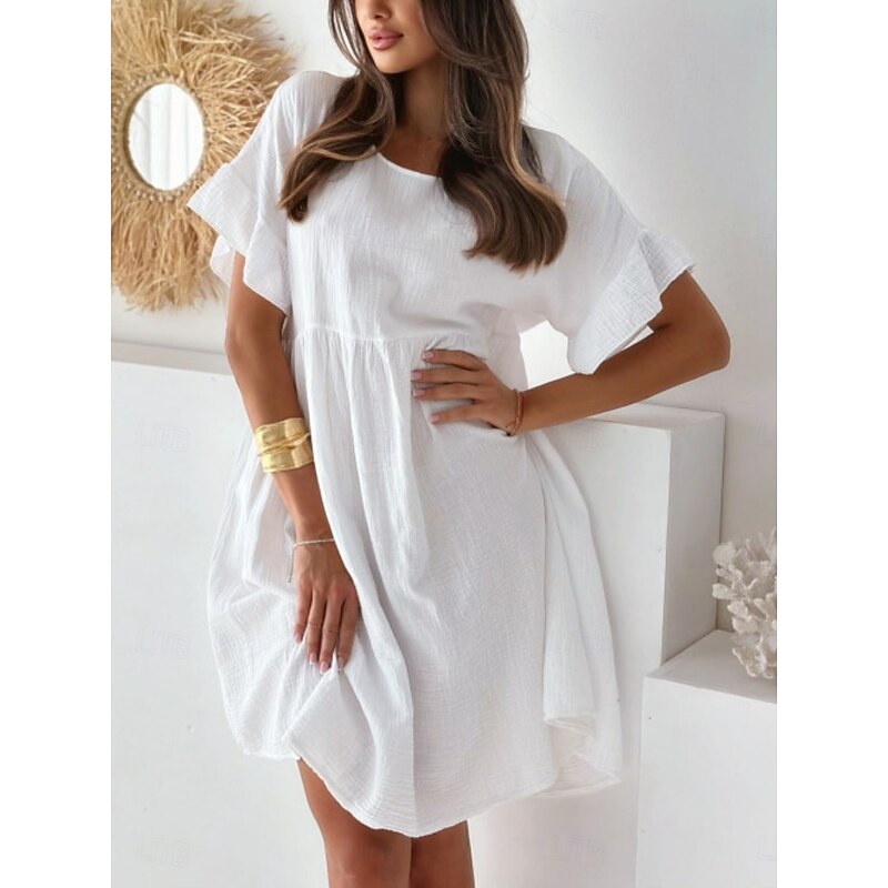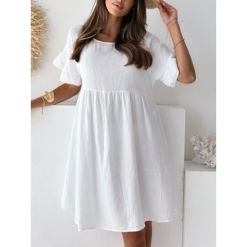 HOT ! Women's Mini Dress Linen-Inspired Dresses White Dress Casual Dress Tank Dress Basic Casual Vacation Daily Regular Fit Plain Half Sleeve Crew Neck Black White Beige Summer