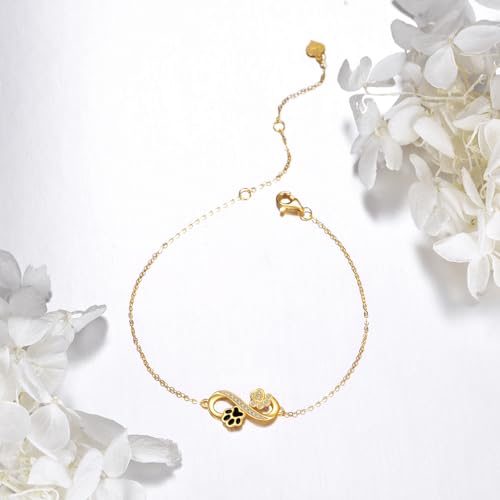 DOVRAN 14K Gold Paw Print Bracelet for Women Real Gold Infinity Bracelet Solid Gold Pet Cat Dog Jewelry Gifts for Her 6