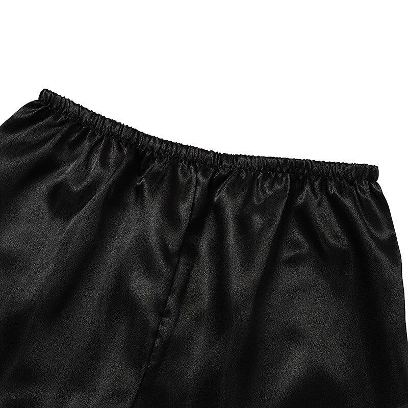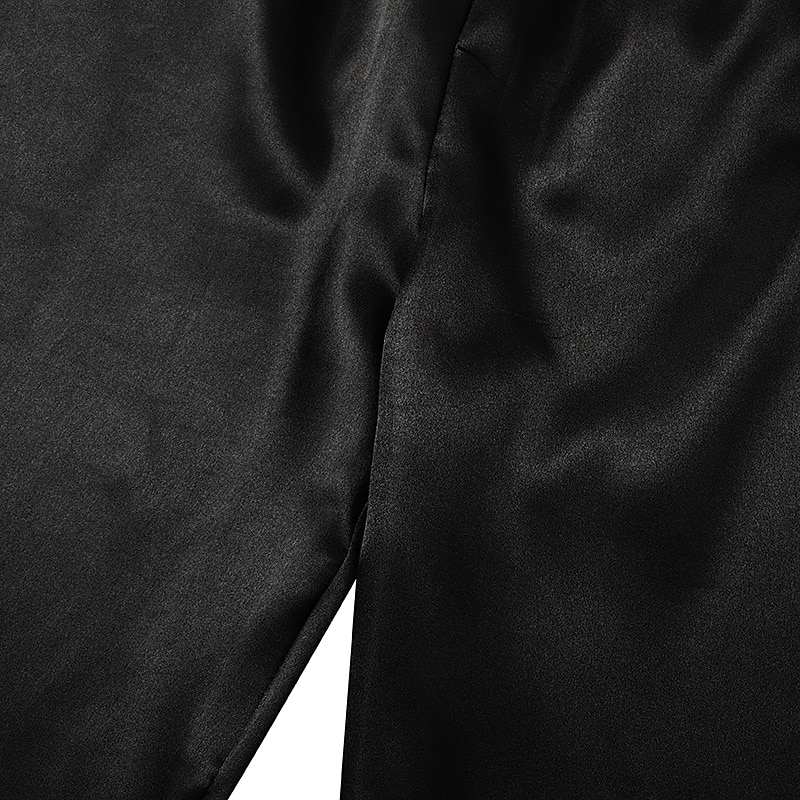 : This sophisticated loungewear set is made from a blend of satin and silk, offering a smooth and luxurious sensation against the skin. The micro-elastic fabric ensures comfort and a relaxed fit, perfect for enjoying a soothing evening at home.