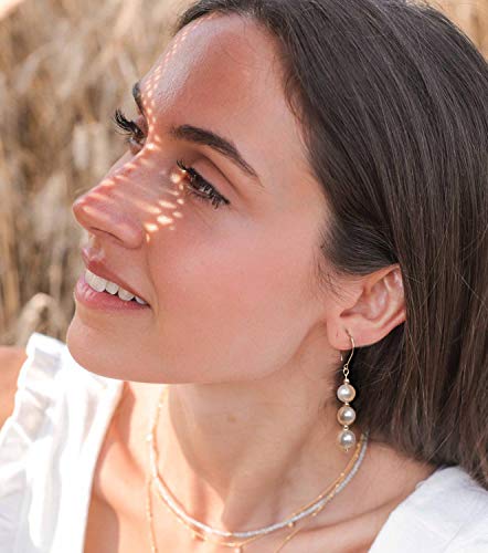 14K Gold Plated Round Bead Ball Drop Earrings for Women Minimal Lightweight Long Dangling Dangle Hoop Wedding Earrings for Brides Bridesmaid Prom Anniversary 7