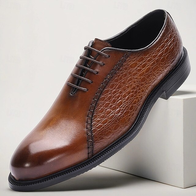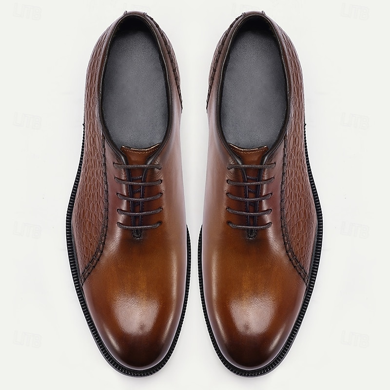 HOT ! Men's Brown Leather Oxford Dress Shoes – Classic Lace-Up Formal Business Shoes for Office, Wedding and Evening Events