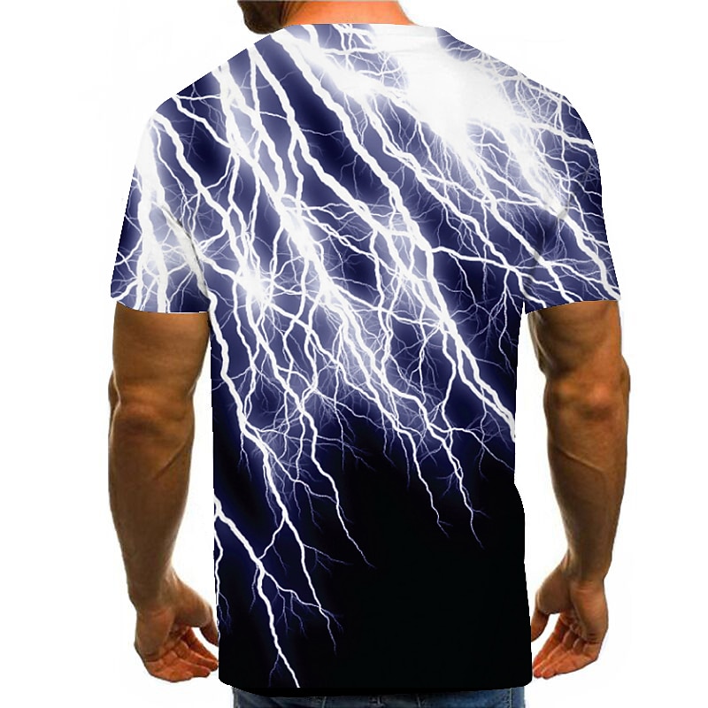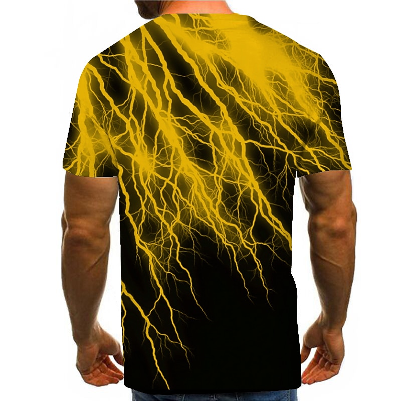 Highlights [Fabric & Fit] : Crafted from a soft and breathable polyester blend, this men's T-shirt ensures comfort throughout the summer season. The micro-elastic fabric provides a regular fit, making it perfect for effortless daily wear. [Design Highlights] : Showcasing a bold lightning graphic print, this T-shirt is designed to stand out. The vibrant pattern covers the front, offering a dynamic and edgy look. The classic round neckline and short sleeves complete the trendy design. [Occasions] : Ideal for casual, everyday activities, this T-shirt is perfect for making a style statement. Whether you're heading out for a laid-back weekend or just a regular day, it adds a touch of flair to any outfit. [Sizes] : Available in a wide range of sizes including S, M, L, XL, XXL, XXXL, 4XL, and 5XL, this T-shirt caters to varying body types, ensuring a comfortable and flattering fit for everyone.