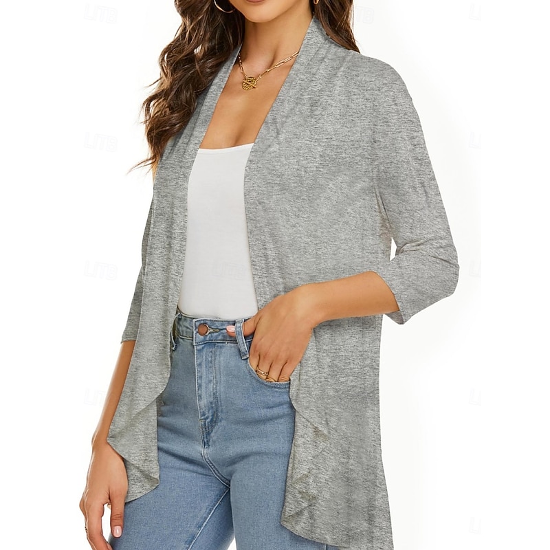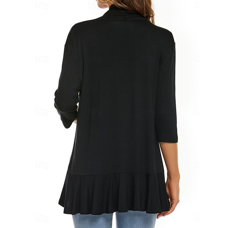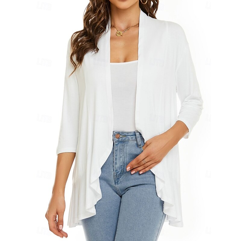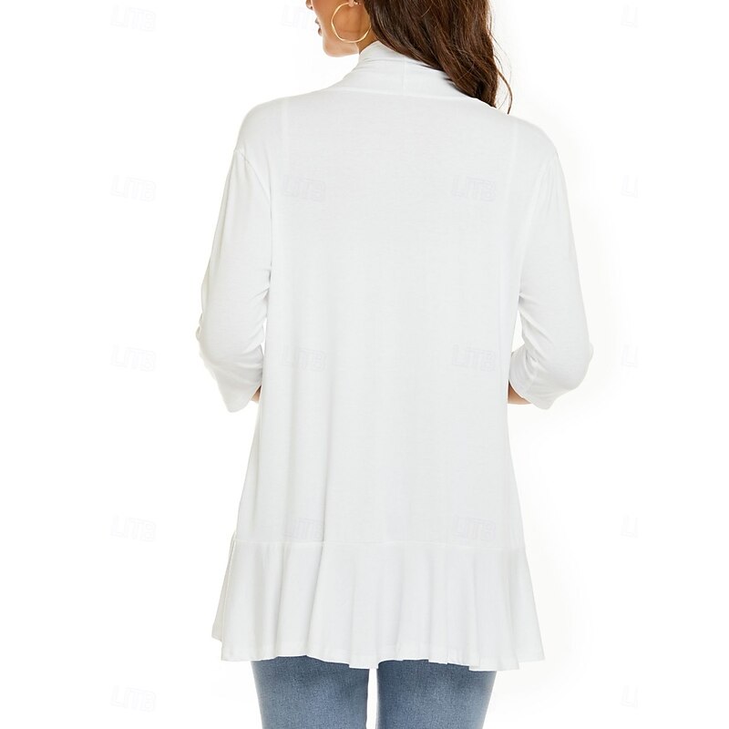 More information about Women's Casual Jacket Breathable Comfortable Ruffle Casual Plain Vacation Street Casual Daily Wear Open Front Regular Collarless Regular Fit Long Sleeve Outerwear White Pink Navy Blue Summer Spring
