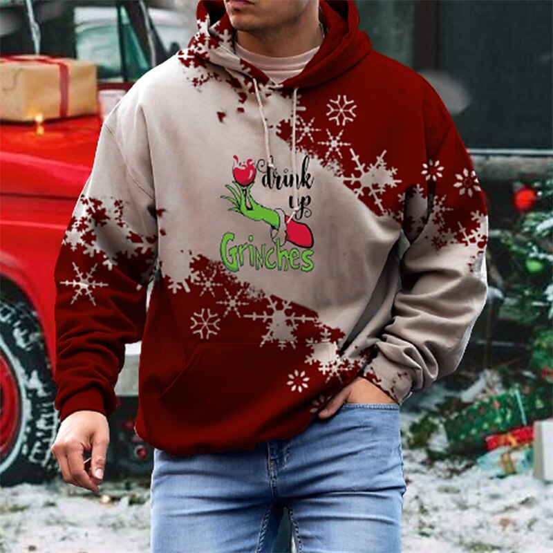 More information about Christmas Men's Christmas Scene 3D Hoodies Santa'S Highway Graphic Fashion Daily Basic 3D Print Pullover Sports Outdoor Holiday Vacation Hoodies Beige Hooded Front Pocket Spring & Claus White Cotton