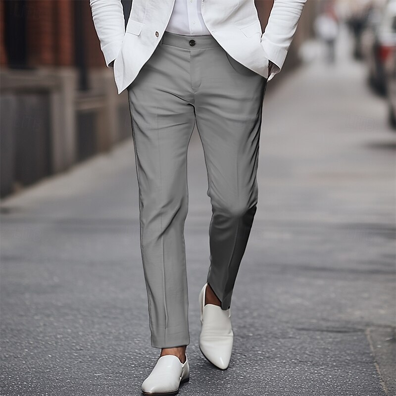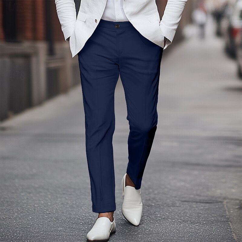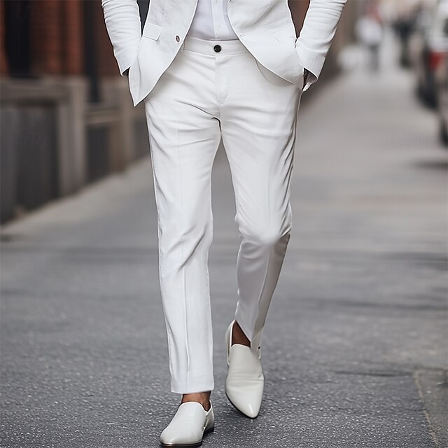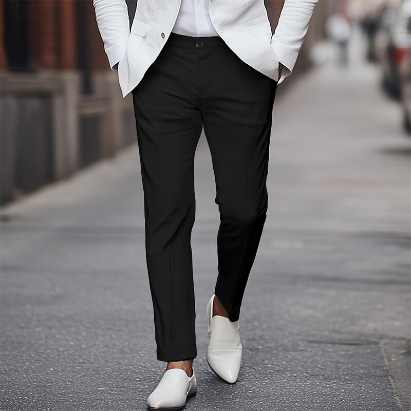 Men's Tapered pants Trousers Dress Pants Suit Pants Pocket Plain Comfort Full Length Party Business Daily Fashion Streetwear Black White Inelastic 8