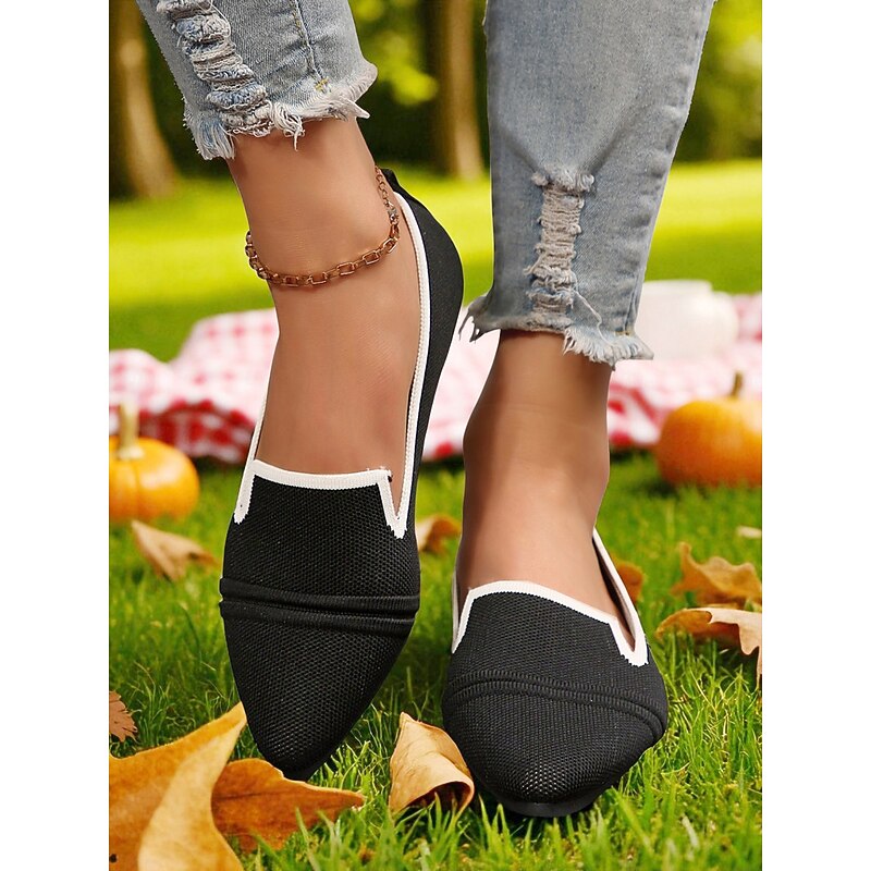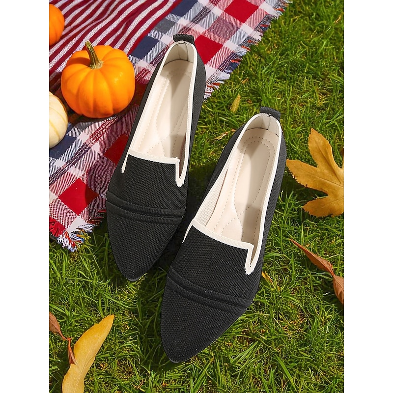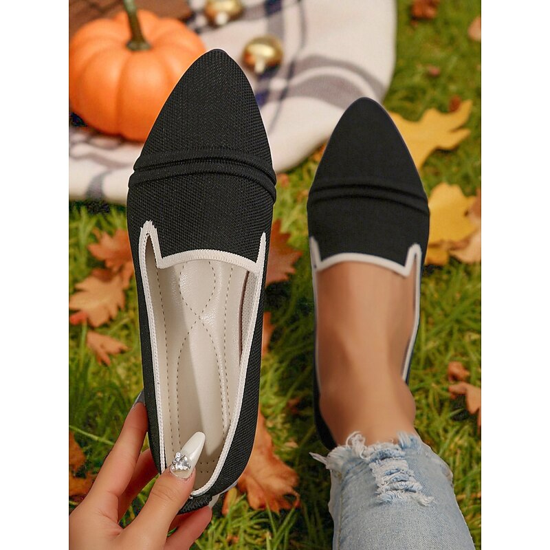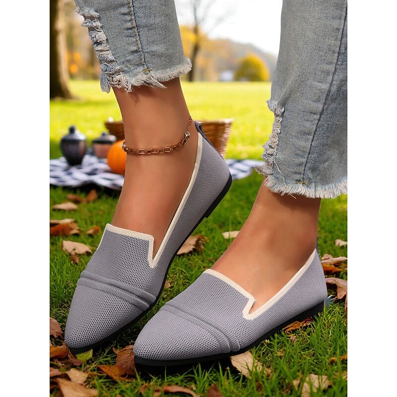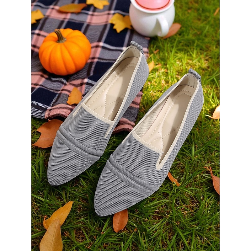 HOT ! Women's Beige Flyknit Flats with Pointed Toe – Lightweight Casual Slip-On Flats for Fall Picnics, Pumpkin Patches and Weekend Coffee Runs