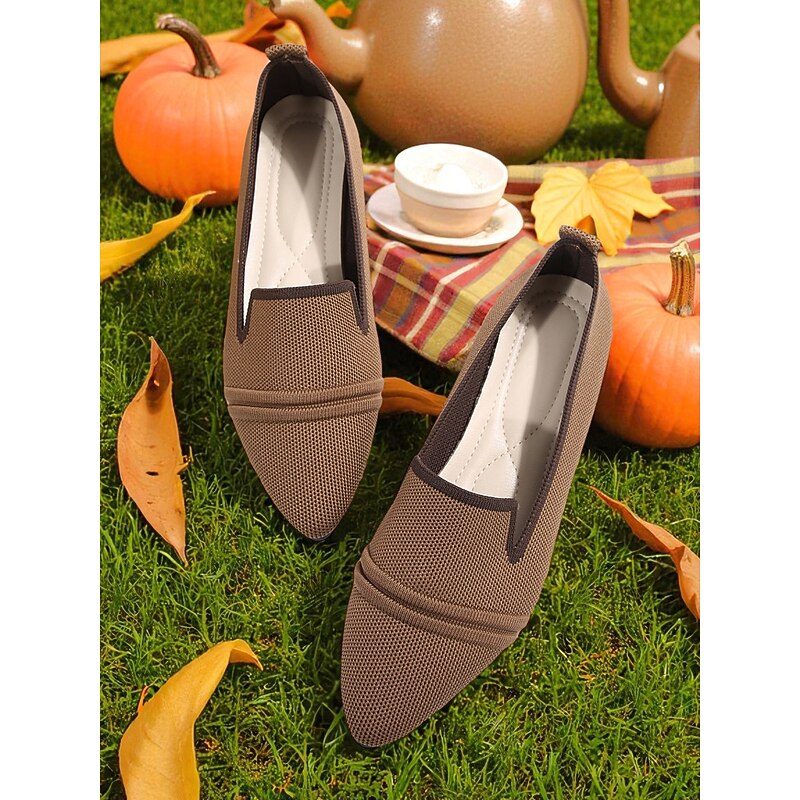 Women's Beige Flyknit Flats with Pointed Toe – Lightweight Casual Slip-On Flats for Fall Picnics, Pumpkin Patches and Weekend Coffee Runs 20